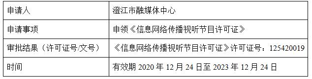 澄江市融媒体中心申请设区的市(自治州)、县级地方新闻单位信息网络传播视听节目许可证核发