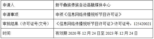 新平彝族傣族自治县融媒体中心申请设区的市(自治州)、县级地方新闻单位信息网络传播视听节目许可证核发