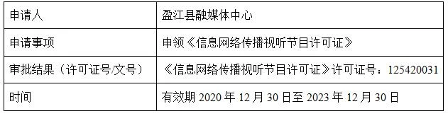 盈江县融媒体中心申请设区的市(自治州)、县级地方新闻单位信息网络传播视听节目许可证核发