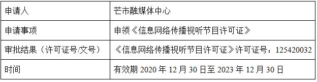 芒市融媒体中心申请设区的市(自治州)、县级地方新闻单位信息网络传播视听节目许可证核发
