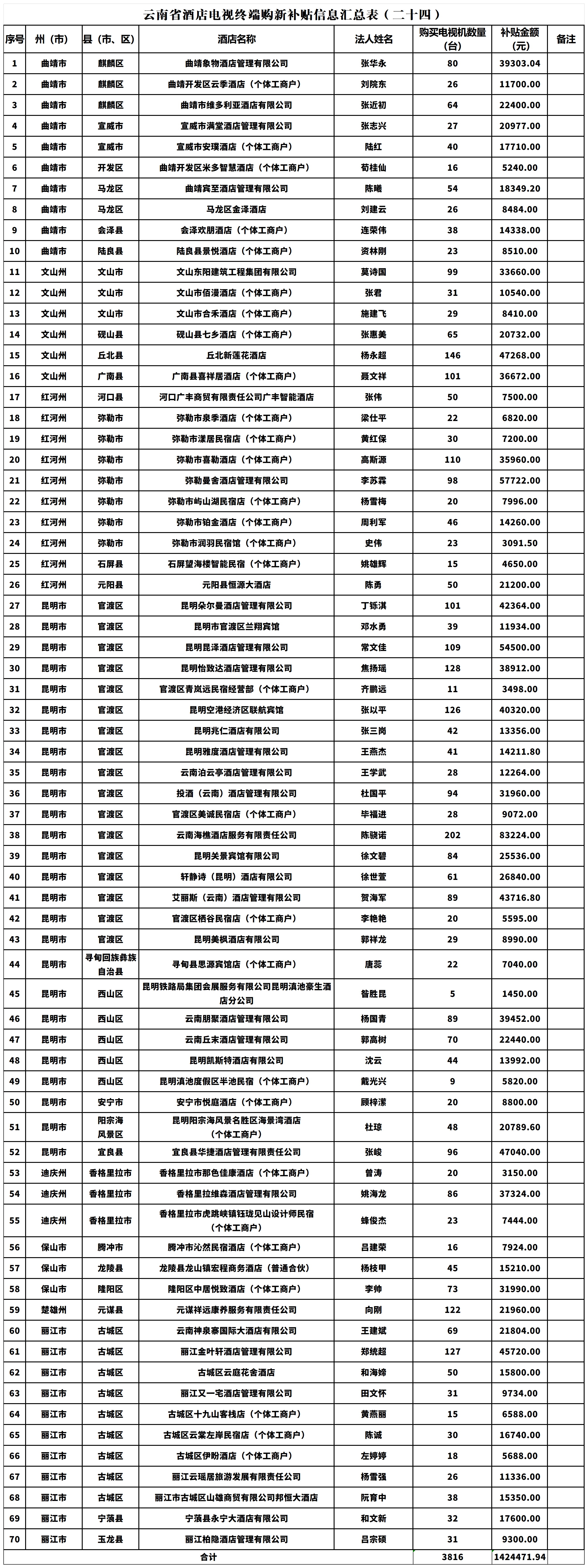 附件:云南省酒店电视终端购新补贴信息汇总表(二十四)
